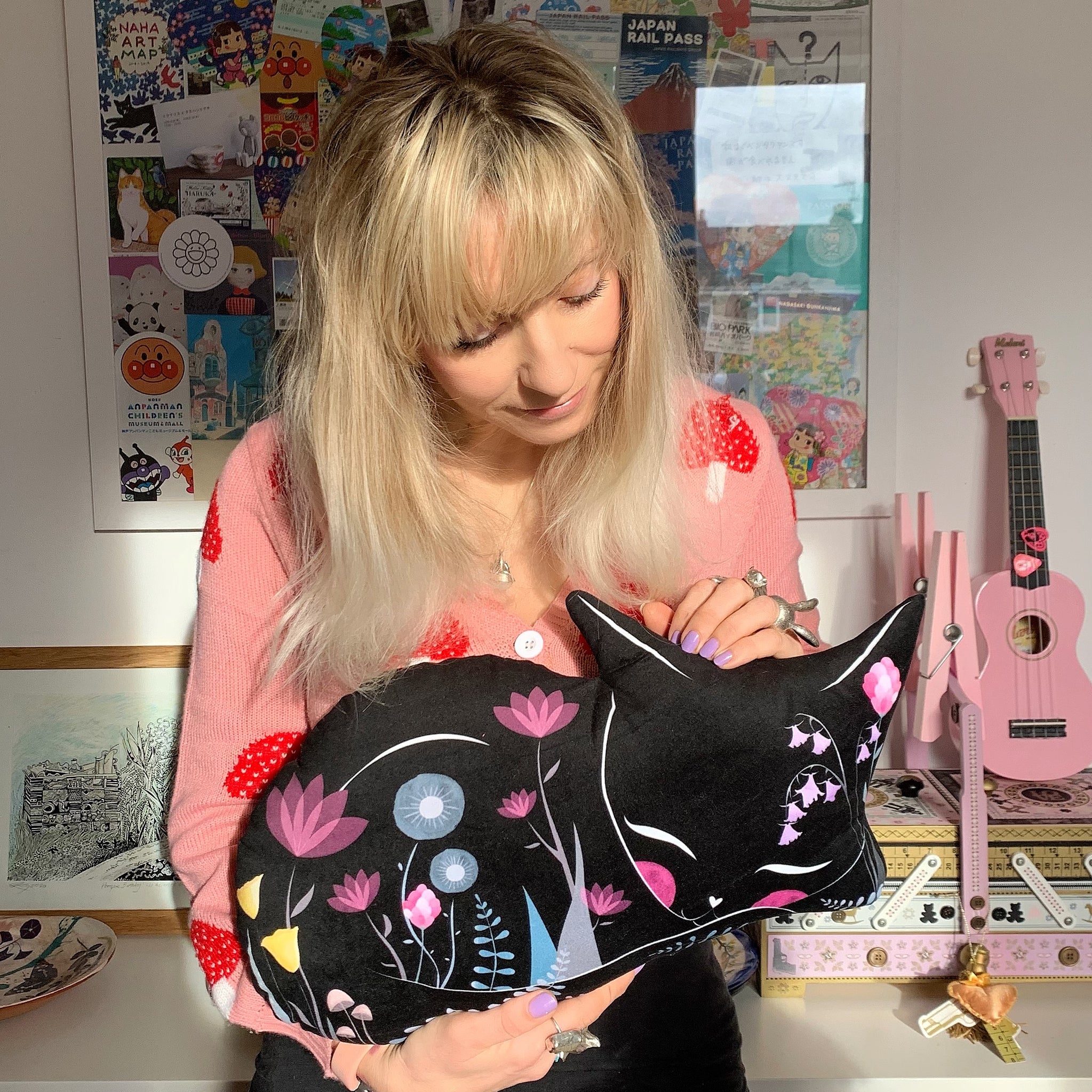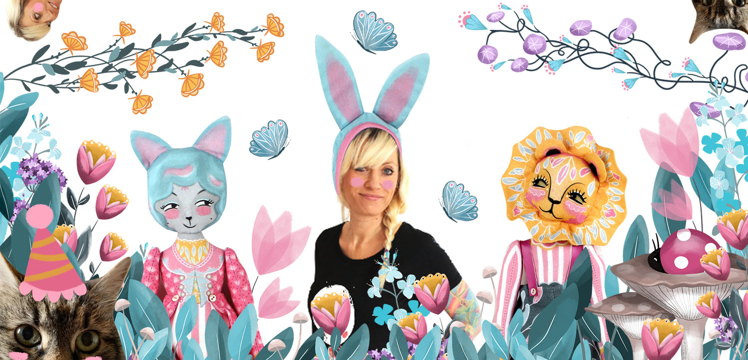 I am inspired by travel, particularly Japan and it's visual culture and magnetic magic drawing me back time and time and again. And Italy where my father has lived since I was a child and where storybook adventures have long since inspired my thoughts and dreams. I collect all sorts of vintage reference books, ephemera and love to get lost in stories old and new. I covet fabrics and patterns and colour, the heat of the sun on my cheeks in the daytime and the ethereal glow of the moon in the night. I am also addicted to hot chillies on everything, drink a cup of tea pretty much every 20 minutes and as you may have noticed LOVE cats and all sorts of other critters who pop up in my work intertwined with florals and fairytales and dreams of running away with the circus.